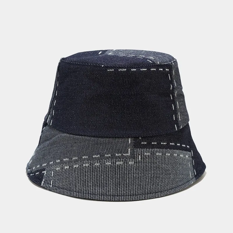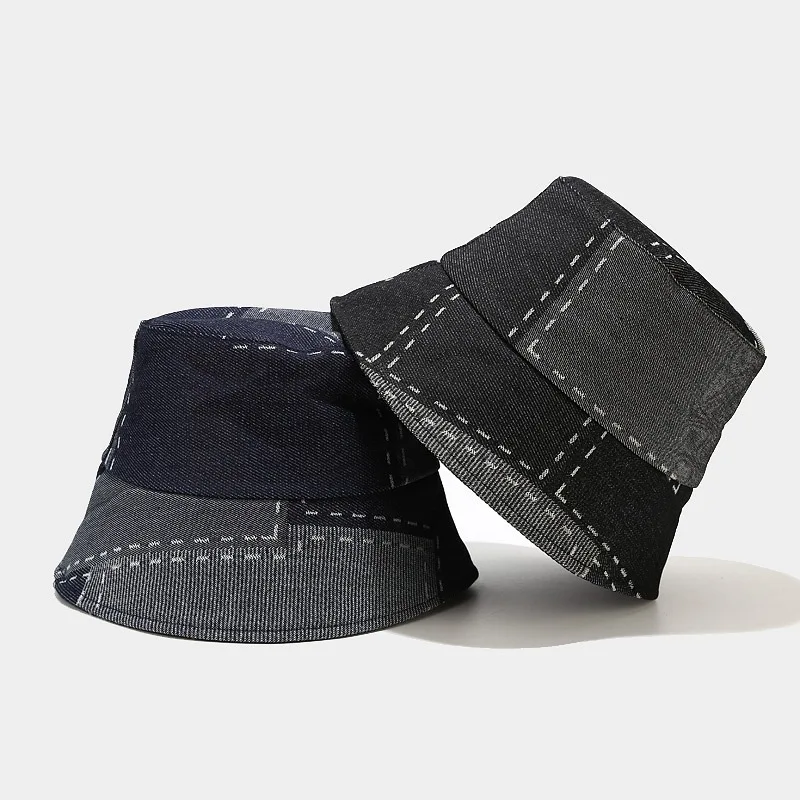 Unisex Custom logo Washed Design Denim Bucket Cap Wholesale Street Wear Torn Denim Sun Hat Wear Brim Outdoor Fishing